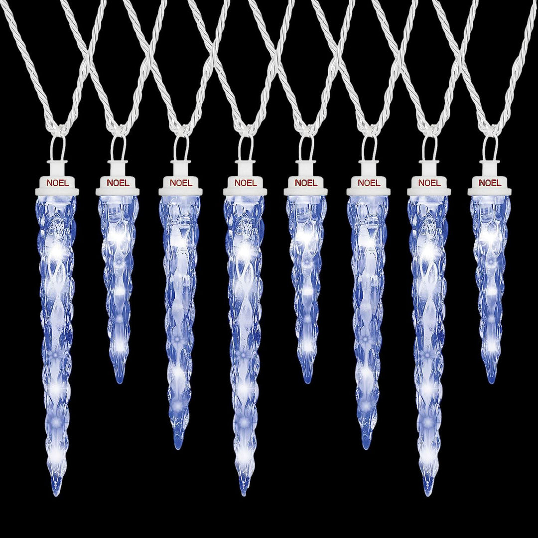 Put on a dazzling display this holiday season with a Shooting Star® Icicle Light String! Featuring 8 LED bulbs in graduated sizes, this Christmas light string displays a spectacular shooting star effect in icy blue and white. It's perfect for outdoor holiday decorating along rooflines, in trees or anywhere you enjoy Christmas lights. Includes bright, energy-efficient LED lights. The LED Shooting Star® technology creates an exquisite display of falling light. Set of 8 blue and white icicle bulbs in graduated sizes (11", 7", and 9"). Use indoors or out. You can connect up to 17 light strands end to end for a grand display! Total of 48 LED lights in a string of 8 Shooting Star Icicles.