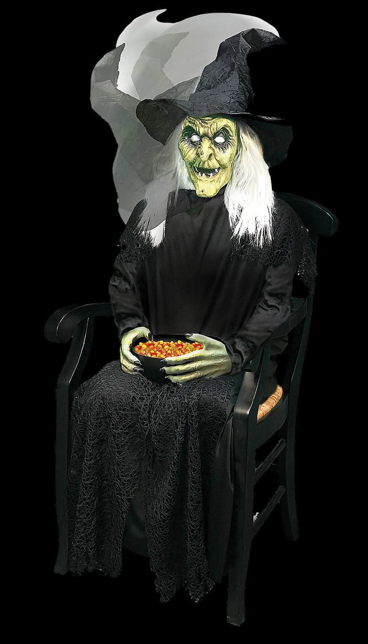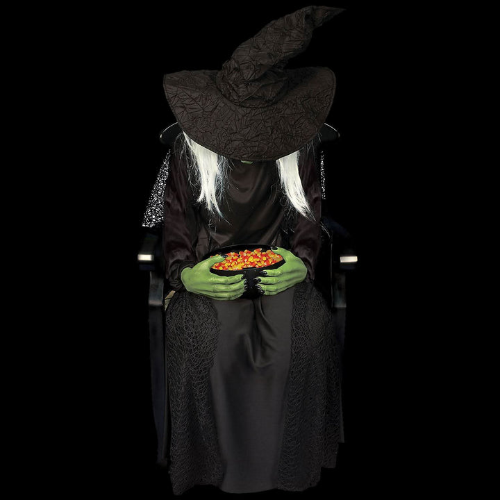 A GREAT ADDITION TO HALLOWEEN PARTY BACKDROPS: Create a Halloween-themed backdrop for a party or event using these bewitching accessories and props, providing a fun and festive setting for photos and socializing. Product Description: Sitting Scare Witch Prop. A sinister old hag and she's ready to cast her spell on you! Witch's head snaps up as she casts a spell on you! Bone-chilling screams and haunting laughter will make your pulse pound with fear. 42" tall! Requires 4 AA batteries not included or one 6v2a adapter. Features head movement, scary audio, sound, and motion activation, and footpad/external speaker compatibility (sold separately ). Special Shipping Information: This item ships separately from other items in your order. This item cannot ship to a P.O. Box. This item may be subject to additional processing days. ITEM IS NOT ELIGIBLE FOR EXPEDITED SHIPPING