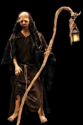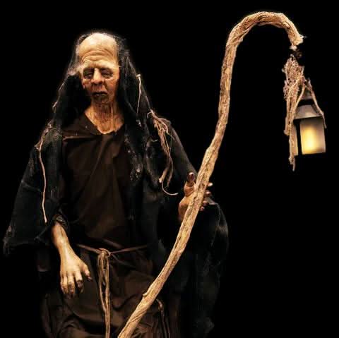 Let your guests be ushered through the darkness of your haunted attraction with our Path Guide prop. This unnerving, ancient character comes complete with shabby attire and a twisted cane topped with a hanging lamp to illuminate the way...(to terror!)