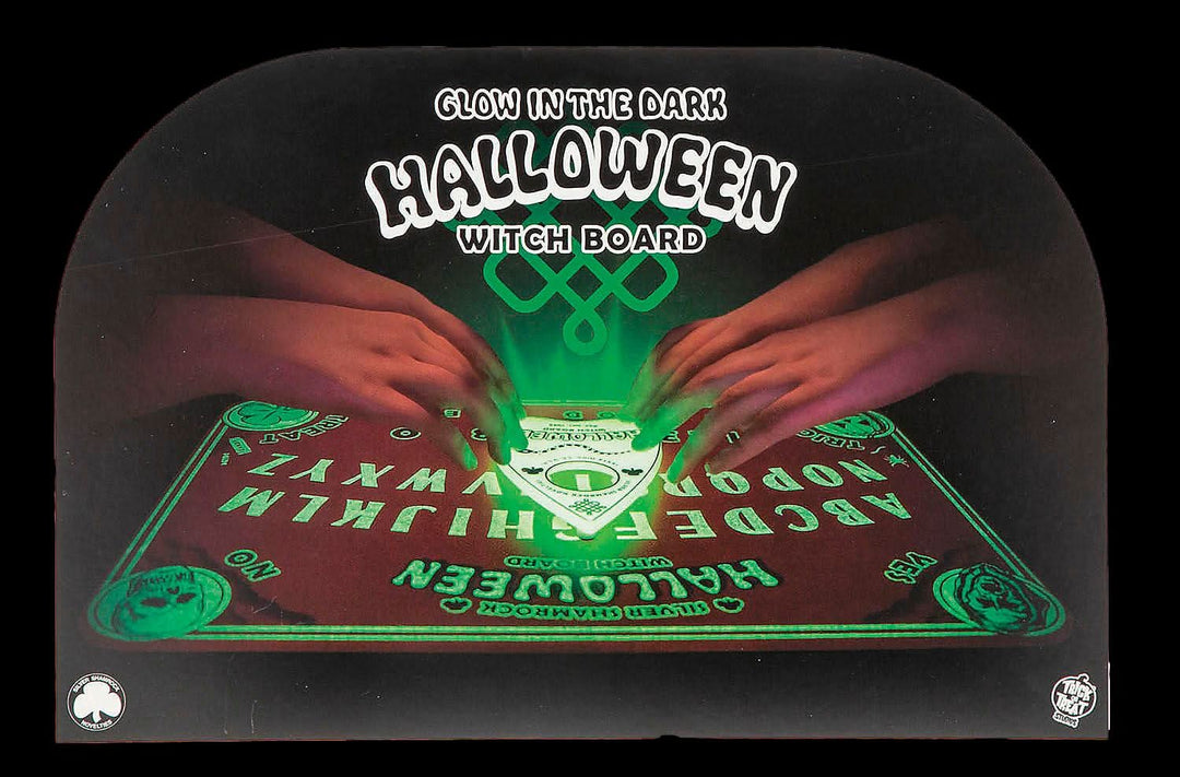 Step into the eerie world of Halloween III: Season of the Witch™ with this meticulously crafted Spirit Board, a hauntingly beautiful replica from the cult classic film. This wooden board is enhanced with glow-in-the-dark elements that illuminate under the veil of night, creating a chilling atmosphere for any gathering. Encased in a collectible display box that makes this even more versatile as it can be displayed proudly in or out of the box. Developed and packaged as is if produced by the Silver Shamrock Company from the movie universe. This is sure to delight as a centerpiece in any horror collection. Ships safely and securely in heavy cardboard shipping boxes. © 2024 Miramax, LLC