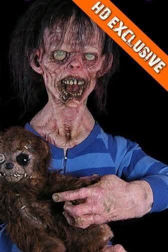 Taken on a family trip and promptly forgotten, a passing zombie took a bite out of young Robbie Rotten. Now this terrifying toddler roams the Earth in search of juicy human brains. Carrying his appropriately zombified teddy bear, this morose monster of a child packs a mighty chomp just as infectious and fatal as his adult brethren. You built the perfect fortifications to keep undead walkers from entering your compound, don't let feisty little Robbie slip through the cracks. The Robbie Rotten Zombie Kid Halloween decoration is a movie-quality prop that will make your guests shriek in fright. Match him with an undead Mom and Dad and complete a happy zombie family. Hand painted and detailed by the inspired craftspeople at The Horror Dome, this disgusting decoration features glazed over, dead eyes, decaying teeth, and fungus covered fingernails that can transmit the zombie virus with one little scratch. Neighborhood trick or treaters will think twice about approaching your home with this juvenile demon on the porch.