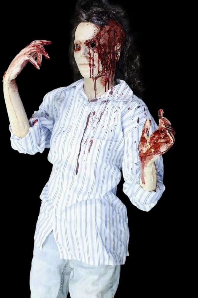 This female figure features a lifecast head with a true-to-life entry and exit wound. The value figure comes with a poseable foam rubber body, realistic lifecast head and hands, generic clothing, and a lightweight stand. Standing at a height of 5'7", this figure is perfect for creating a gory atmosphere.