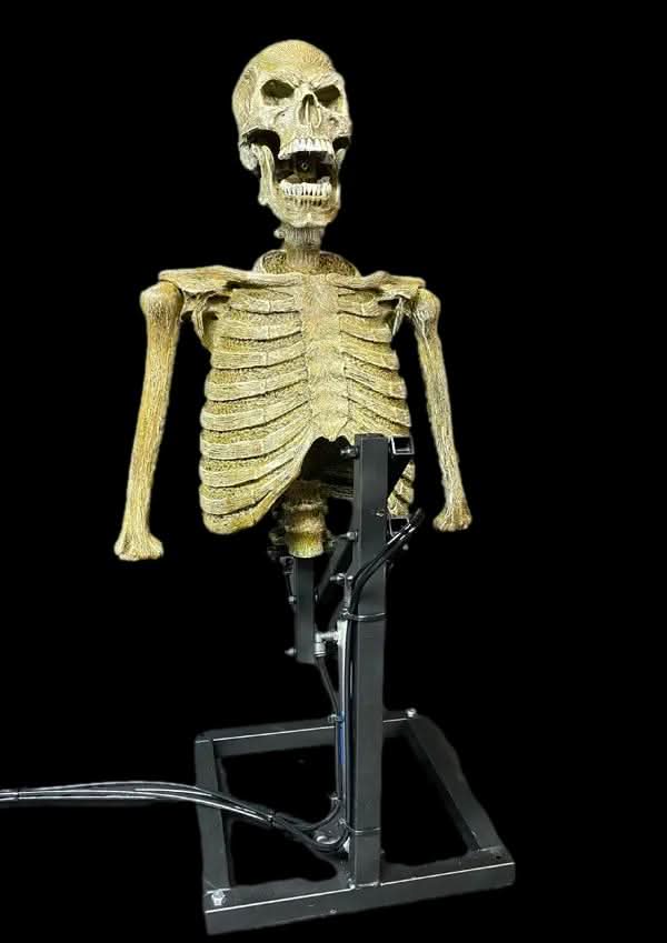 Don’t let its size fool you — the Mini Popper Skeleton Animatronic is one of the most effective scare props you can add to your haunted house or Halloween display. Designed as an “entry-level” skeleton animatronic, this highly detailed skeletal torso features an evil skull, severed upper arms, and a chilling antique-aged bone finish for maximum realism.