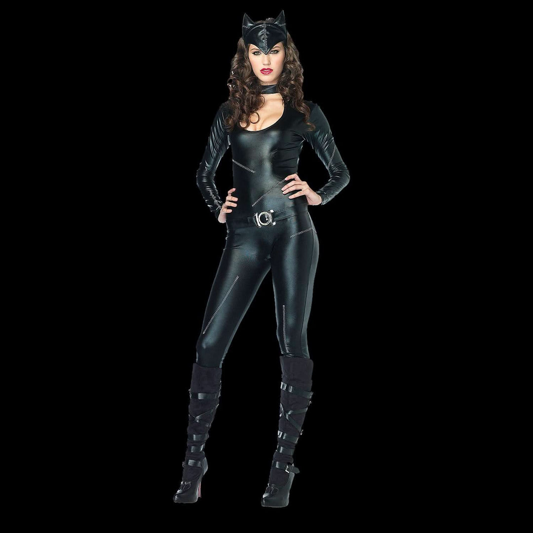 3 Pc. Includes keyhole catsuit with stitching detail and attached tail belt and matching ear headband. Black.