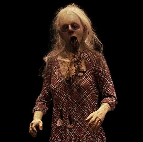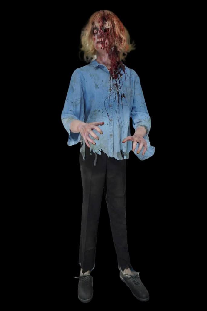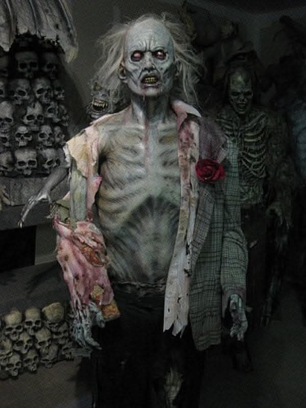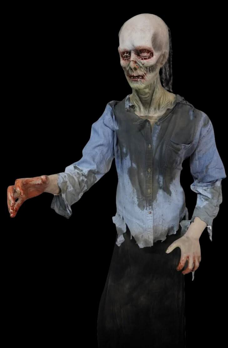 Straight from the grave comes this undead creature. Professionaly made by one of our professional FX movie artists. A Pure piece of Art at its finest! No detail was left out! Grave yard dust, dirt, custom costumed and custom painted. Stands on a custom wooden base at 6' tall.