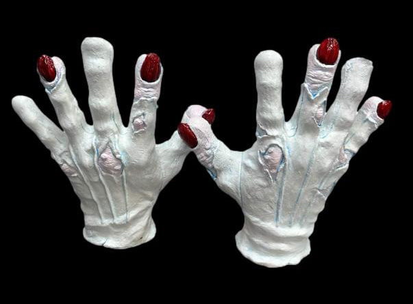 These vein popping monster hands fit with many of our characters! They have great dexterity in a light weight cotton glove. Natural latex uppers. Sized to fit up to a men's large. Hand poured, painted and made in the USA.