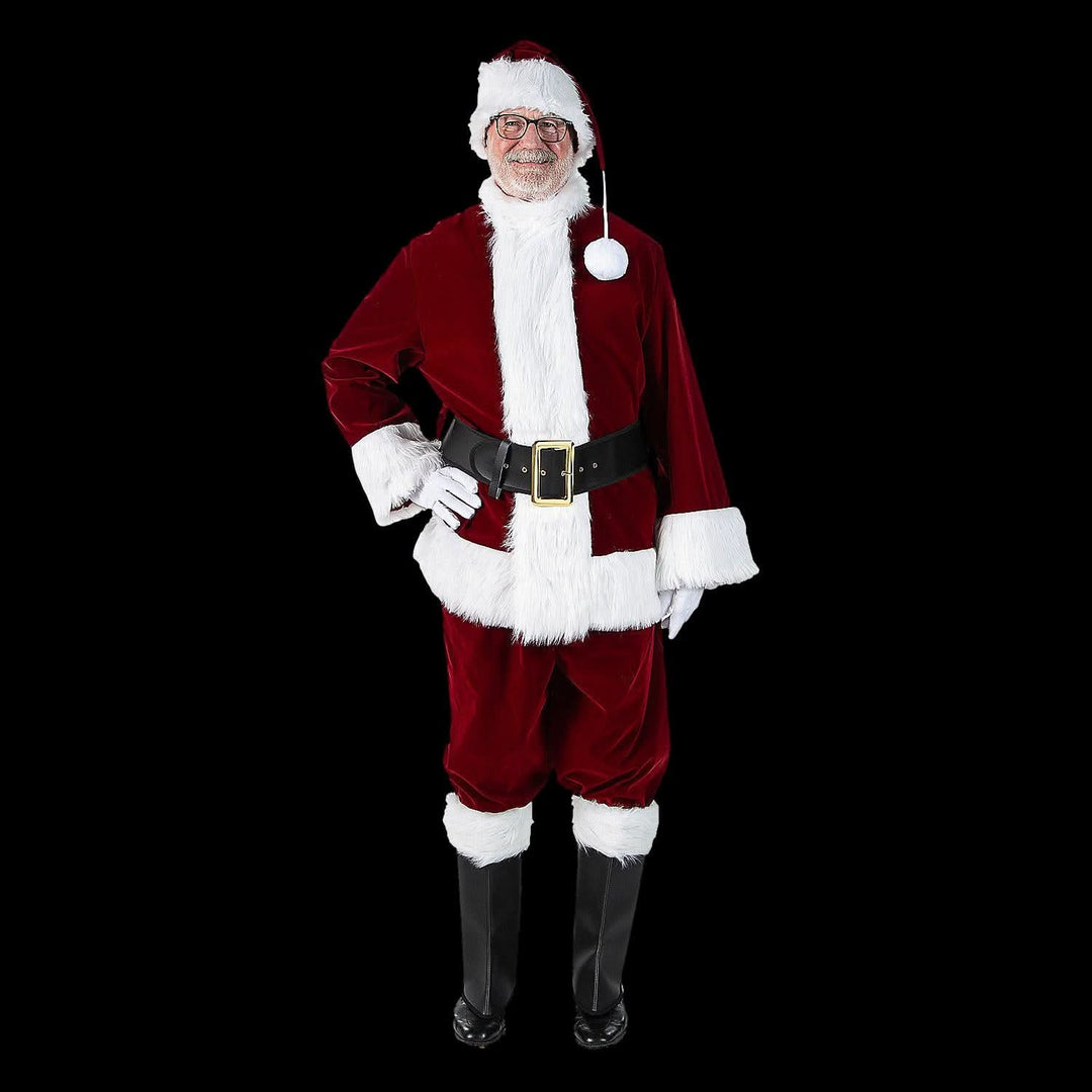 Delight party guests young and old when you show up to Christmas parties, business events or family gatherings wearing this exquisite burgundy velvet Santa Claus costume that will transform you into Santa himself. Made from exquisite burgundy velvet and accented with luxurious, white long-hair plush trim, you'll look like you've stepped right out of the workshop and arrived fresh from the North Pole itself. With a sack full of gifts and take-home favors for kids young and old, this costume is sure to make an unforgettable holiday experience. Suit includes: