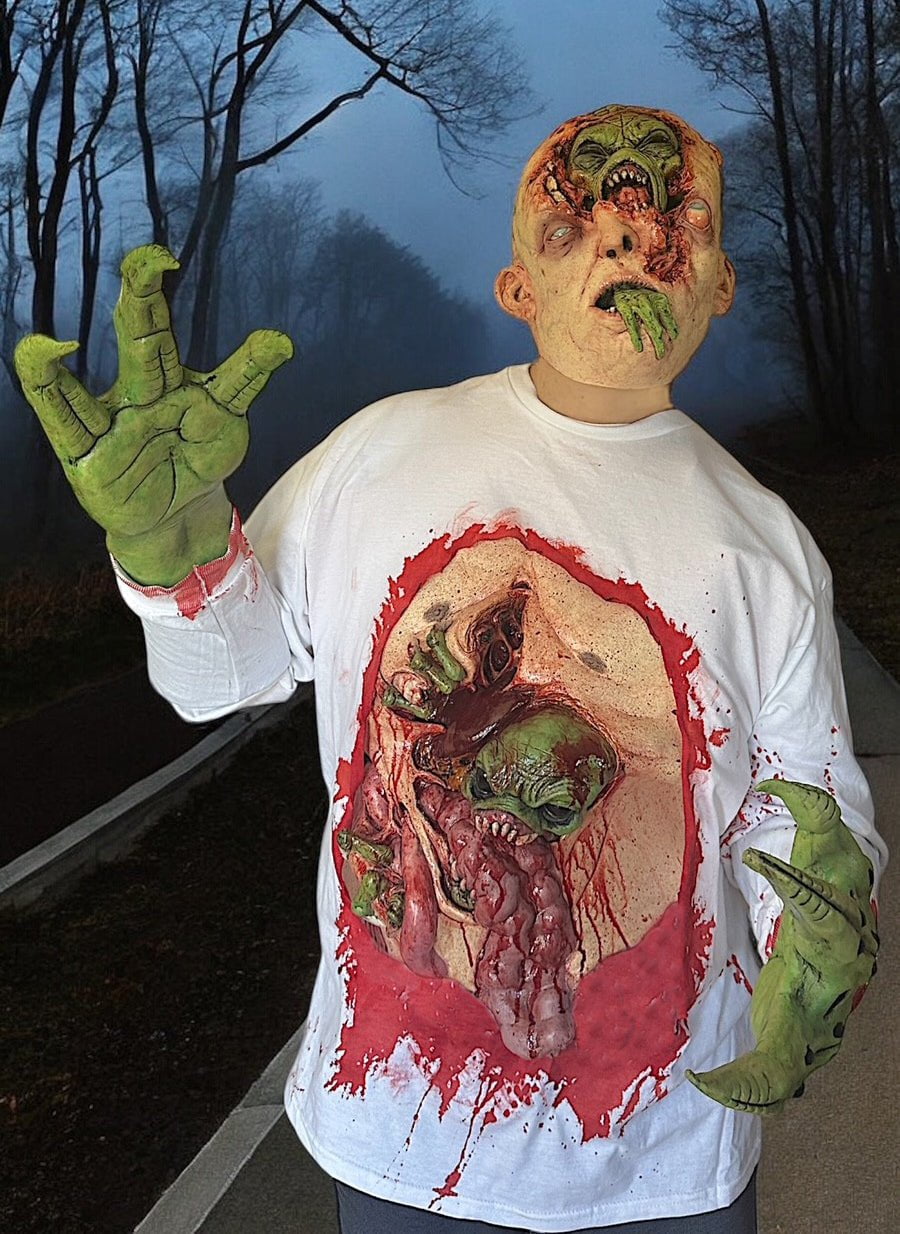 Become the Alien Host with this HD Studios costume. This high-quality, hauntingly detailed mask, movie quality chest, and comfortable latex hands are perfect for those 5'9"-6'4" and 160-230 lbs. Exude terror in style and scare all who dare to cross your path. This is truly a movie quality costume made to impress!