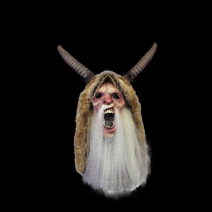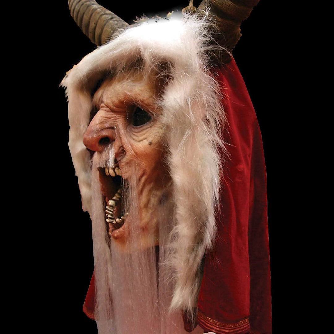 You make your victims fears come to life when you use this mask to become the title character from the horror movie hit Krampus! 100% latex, individually hand-painted for the best look, full over-the-head mask, beard attached. One size fits most adults.
