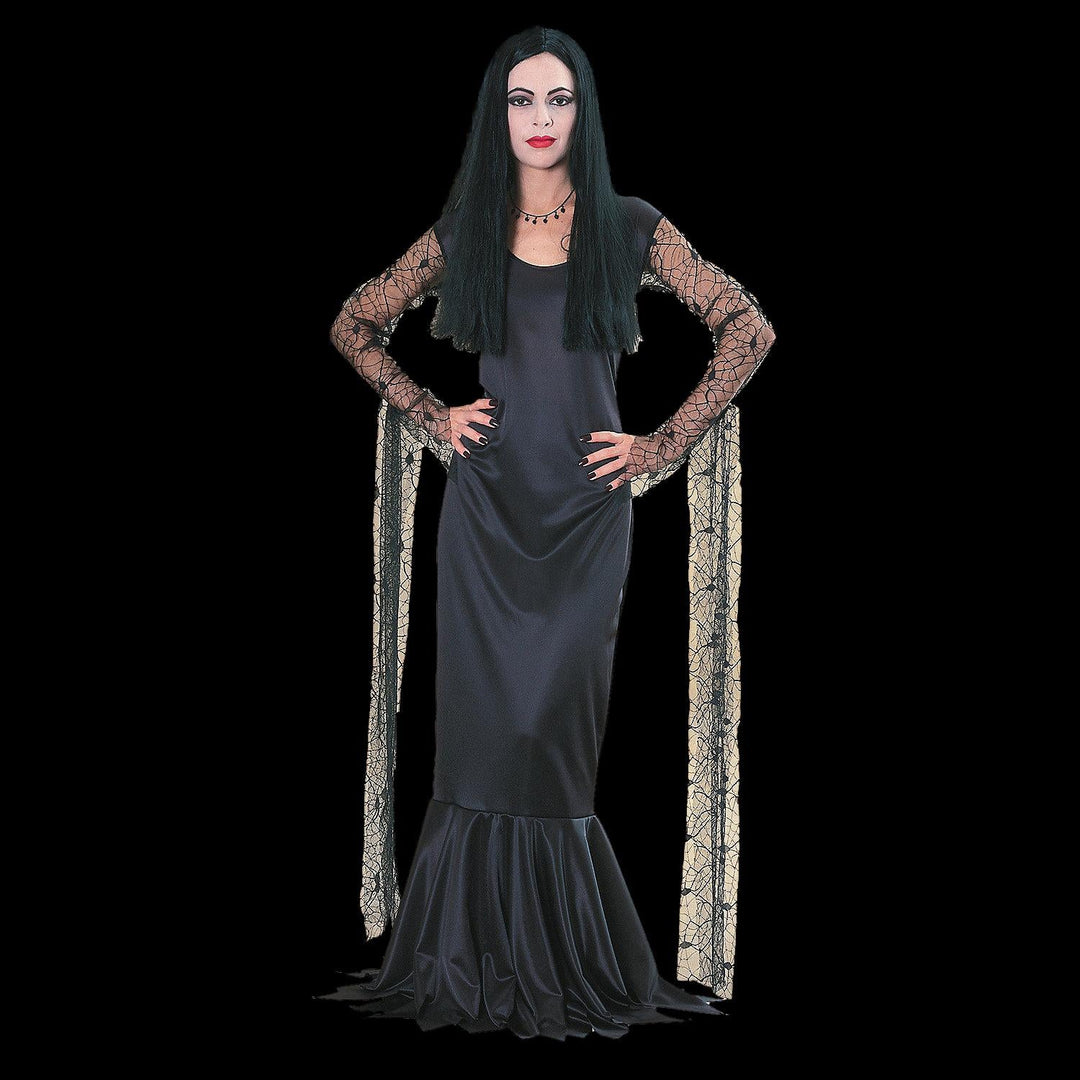 Haunted house? Costume party? Or spending the night trick or treating with the kids? Wherever you’re going this Halloween, this Morticia Addams Family Adult Costume is sure to put you in the Halloween spirit. This classic TV character remains everyone's favorite Cara Mia!!Includes: