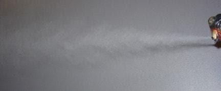 When triggered, water will siphon from reservoir, and a fine mist of water will shoot between 6-12' out of the mechanism tip.