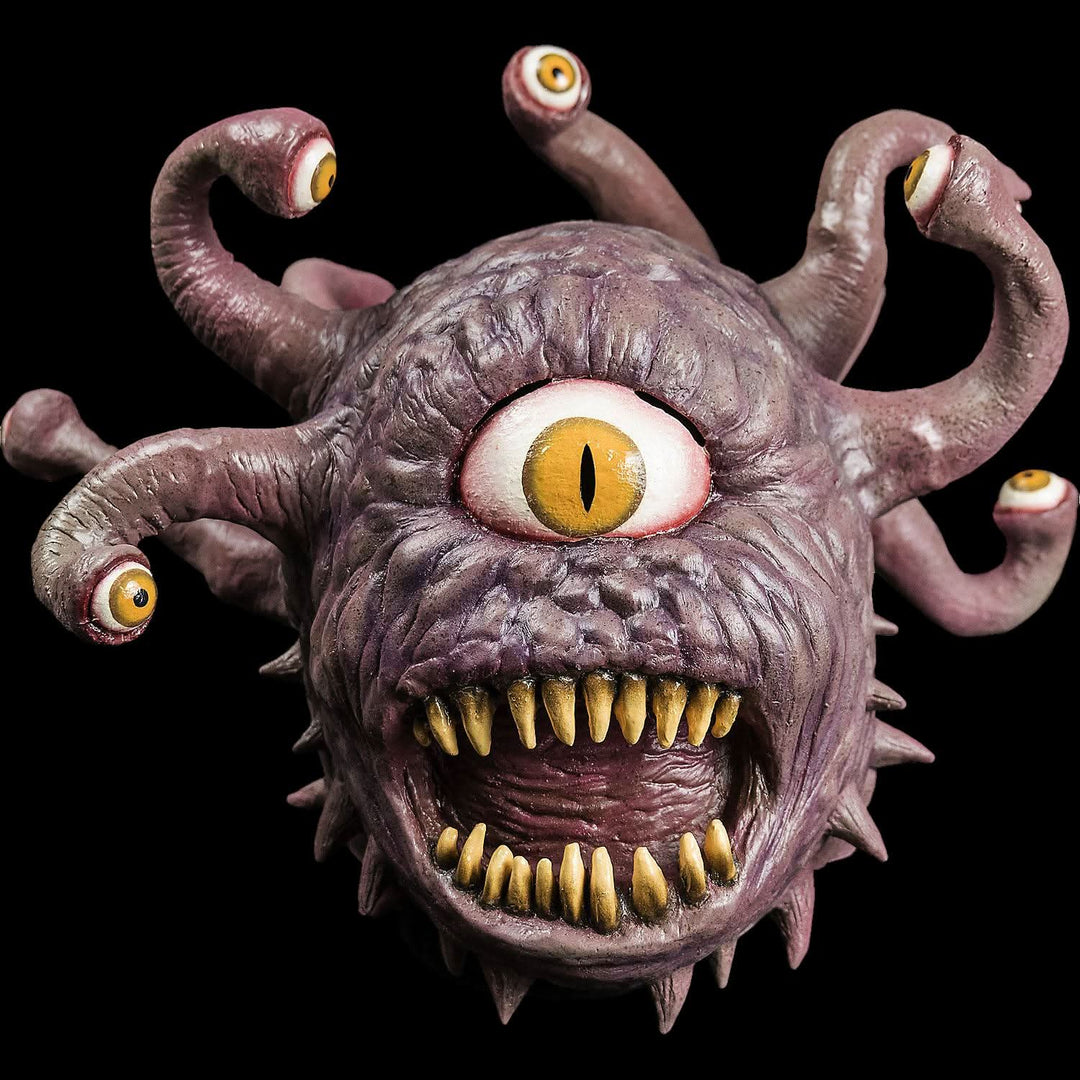 • ELEVATE YOUR COSTUME: Masks can add an impressive visual element to your costume, creating an extra level of detail that can make a DIY or generic ensemble look extraordinary.  Product Description: Trick or Treat Studios is proud to present the officially licensed, Dungeons & Dragons - Beholder Mask. The Beholder is one of the earliest D&D creatures and a true fan favorite. This expertly sculpted mask features 10 protruding eye stalks, spikes and a gaping, toothy maw, this mask is sure to terrify. Level up your game night or wear your fandom to the next Halloween party! Sculpted by Chris Williams. Material: Latex. Dungeons & Dragons TM & © 2022 Wizards of the Coast LLC. All rights reserved.