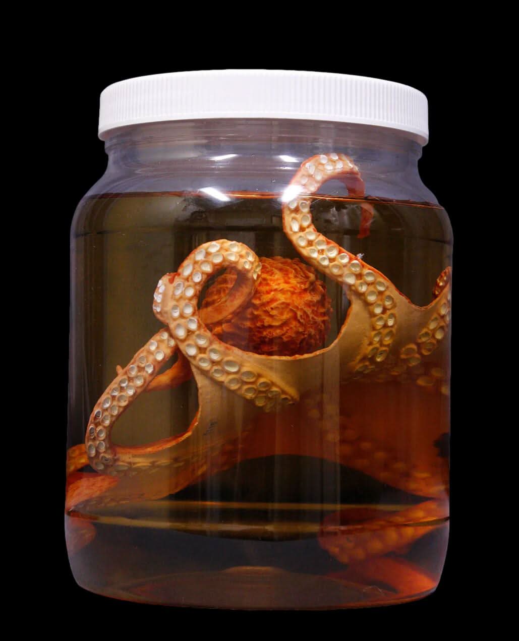 Create a classic wet specimen look by filling the jar with a mixture of 75% water and 25% rubbing alcohol. And for an added twist, choose from either amber food coloring for a formaldehyde appearance or UV dye that glows under blacklight for a mad science vibe. This prop combo also includes three vials of concentrated dye to truly bring your Halloween display to life.