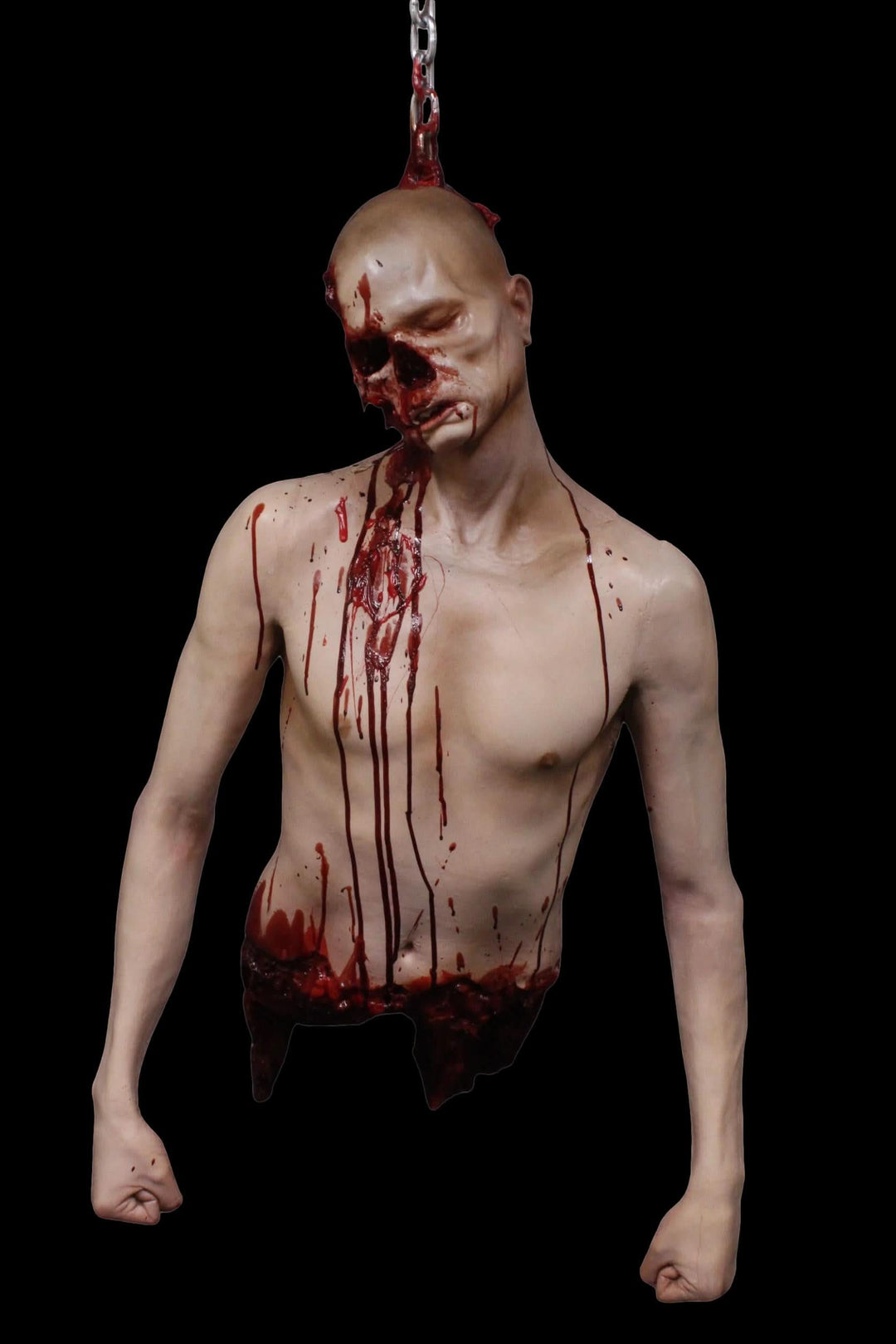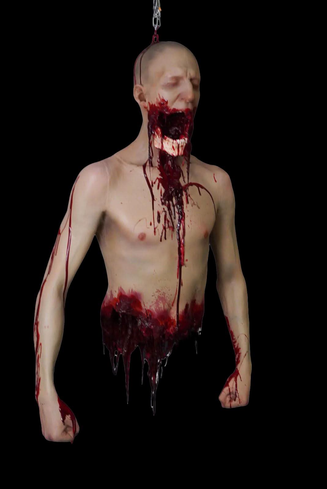 This hanging gutted Martin prop is a life-size, lifelike torso that is perfect for adding a grisly touch to any meat locker or other terrifying setting. With lots of blood and gore, reinforced arms for hanging, and realistic guts spilling from the waist, this prop is sure to frighten and shock your guests.